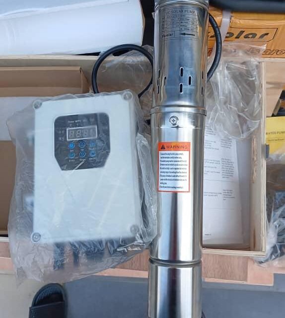 Components: Includes a stainless steel submersible pump unit and an MPPT (Maximum Power Point Tracking) solar pump controller.