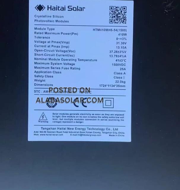 The 410W Haitai SOLAR PANELS offer exceptional performance, reliability, and value. Ideal for Nigerian energy needs.