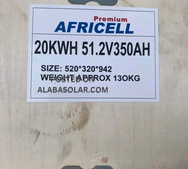 The Africell 20 kWh, 51.2 V LiFePO₄ battery is a deep-cycle energy storage unit designed for home or business solar/hybrid installations. Using lithium-iron-phosphate chemistry it offers enhanced safety, long cycle life and minimal maintenance. With a nominal voltage of 51.2 V it integrates readily with 48 V inverter systems, and a 20 kWh capacity can support moderate loads for extended backup durations. A built-in BMS (battery management system) safeguards against over-charging, over-discharging, and thermal issues — making this solution ideal for areas with frequent power outages, by storing clean energy for reliable usage and scalable expansion over time. Etc