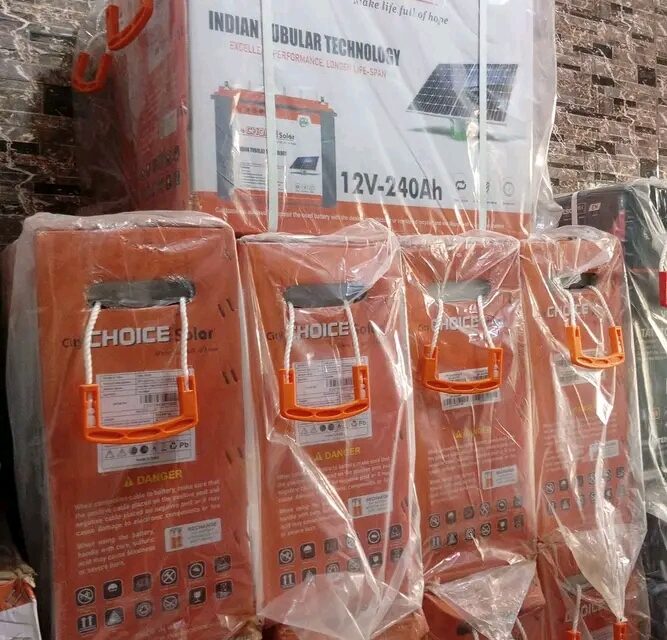 The City Choice Solar Tubular Battery 240Ah 12V is a high‑capacity deep‑cycle battery ideal for solar power systems, inverters, and off‑grid backup in Nigerian homes and businesses. Built with tubular plate technology, it delivers reliable and long‑lasting performance, excellent charge acceptance, and reduced maintenance compared to traditional flooded batteries. Its 240Ah capacity at 12 volts ensures extended power backup during frequent outages, making it suitable for powering lights, appliances, and essential equipment. The robust design helps withstand deep discharge cycles and harsh operating conditions typical in Nigeria. Etc