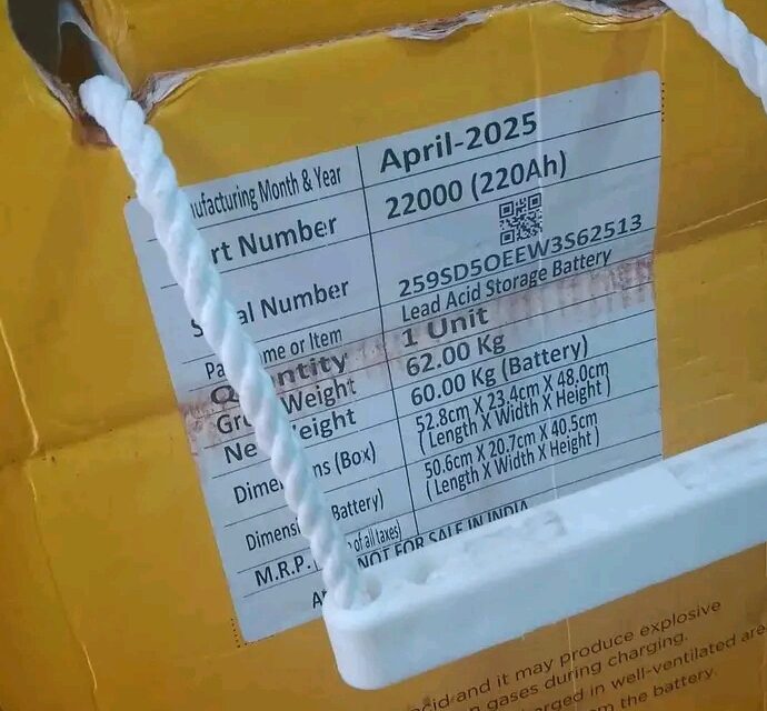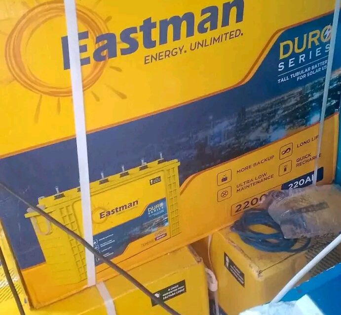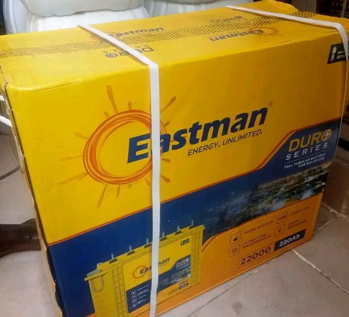 The Eastman Solar Tubular Battery 220A 12V is a reliable deep-cycle battery designed for solar and inverter systems. Built with heavy-duty tubular plate technology, it offers strong performance, long service life, and consistent backup power ideal for homes, offices, and small businesses facing frequent power outages in Nigeria. Its tubular design promotes efficient charge acceptance, low self-discharge, and durability under regular cycling applications. The robust construction and vent plug technology also help reduce corrosion and handle tough climatic conditions often experienced in Lagos. This 12-volt, 220-ampere-hour battery is a popular choice for solar installations due to its balance of capacity, longevity, and affordability. Etc