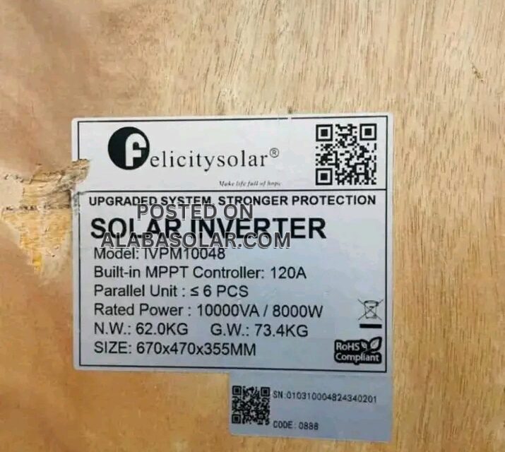 Felicity Hybrid inverter 10Kva 48V with 120A MPPT