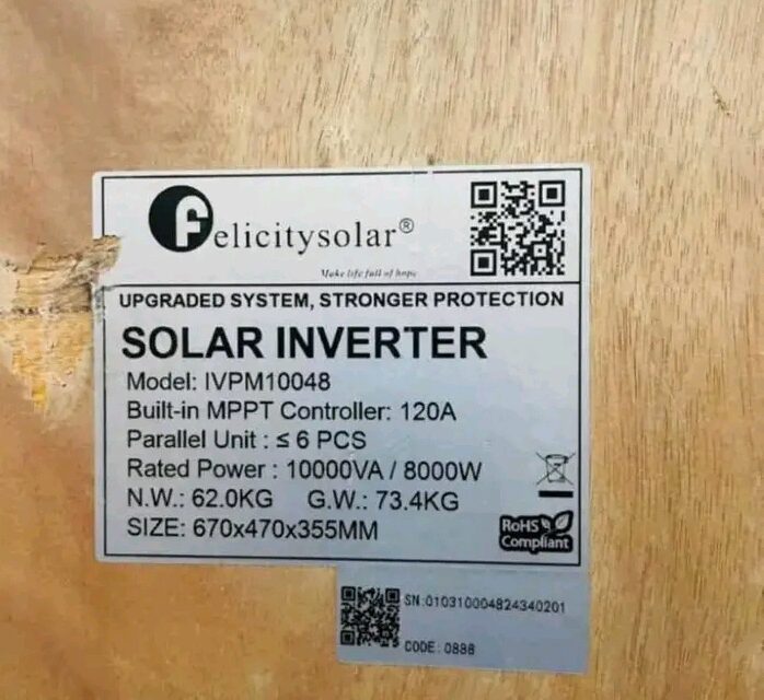 The Felicity IVPM 10KVA is a hybrid inverter, meaning it can work with solar panels, NEPA (PHCN) power, generator, and batteries all together. It intelligently manages power sources to ensure uninterrupted electricity while reducing fuel and grid dependence.