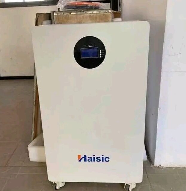 The Haisic 15 kWh 51.2 V LiFePO₄ battery is a high-capacity, deep-cycle energy storage solution built for reliable and long-lasting performance. With a nominal voltage of 51.2 V and a capacity of around 280 Ah (≈14.3 kWh), this battery features a robust battery management system (BMS) that provides protection against overcharge, over-discharge, overheating, and short circuits. It supports communication via RS485 or CAN, enabling seamless integration with hybrid/smart inverters (such as Growatt, GoodWe, Sol-Ark, and others). Its tall, rugged structure and wall-mount design promote space efficiency while delivering more than 6,000 cycles at 0.5 C, offering exceptional longevity. The battery is also designed for high-temperature tolerance, making it ideal for climates like Lagos. Weighing around 117 kg, it’s engineered for a secure, semi-permanent installation — especially for home solar systems, offices, or backup power setups. Etc
