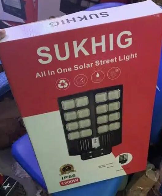 This is a Sukhig All-in-One Solar Street Light, specifically the 1200W model as indicated on the packaging.