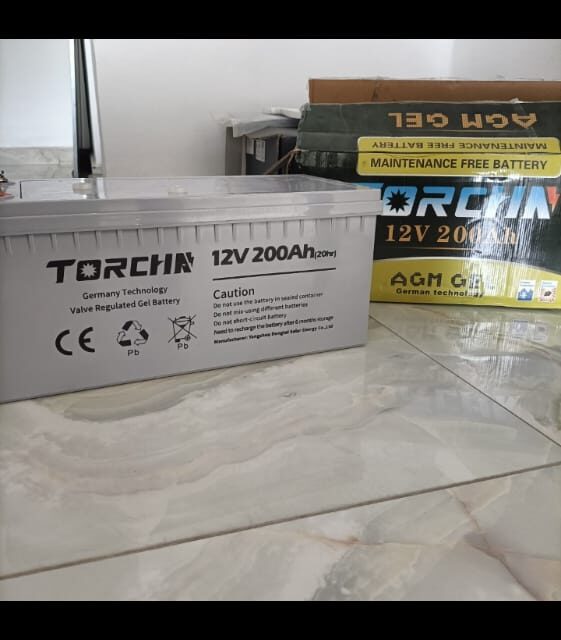 TORCHN 12V 200Ah Valve Regulated Gel Battery designed for energy storage in solar power systems, UPS (Uninterruptible Power Supplies), and inverter systems.